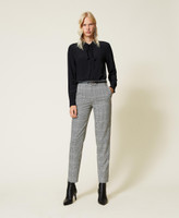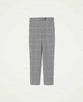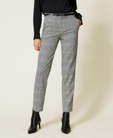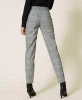 Wool blend Glen Plaid trousers with slant pockets, button and zip in front, Oval T logo.