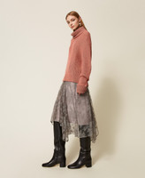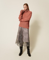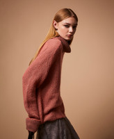 Wool blend two-tone vanisé turtle neck jumper. High neck, long sleeves folded at the cuffs, loose fit. The cotton used for this garment (24% cotton) is organic, therefore it may contain natural impurities as it did not undergo any chemical treatments. This item is part of the “Archive” range, inspired by the most iconic and most loved garments from the Twinset collections.