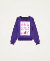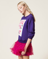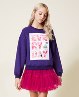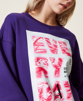Actitude collection brushed cotton boxy sweatshirt with wide sleeves and film-like digital print.