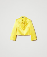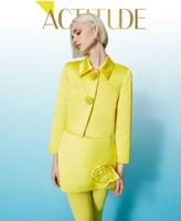 Actitude collection short duchesse jacket with three-quarter sleeves, appliquéd roses, inner lining.