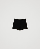 Shorts made in Italy from plain knit stretch viscose with ribbed trim, Oval T logo plate one side, fitted.