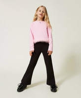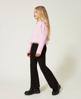 A brand new fit for the stretch Milano stitch flared trousers with side zip and metal Oval T logo at the waist. Versatile charm for your daily and special looks.