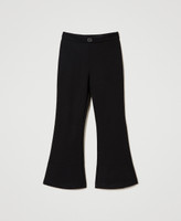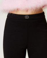 Stretch Milano stitch flared trousers with side zip and metal Oval T logo.