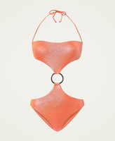 Glitter fabric trikini with non padded bandeau top, zama loop, lace at the neck.