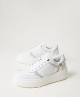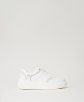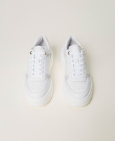 Leather platform trainers with debossed patterns and suede details, Oval T logo and rubber sole.