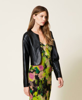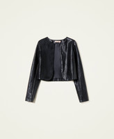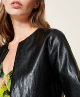 Leather-like crew neck jacket