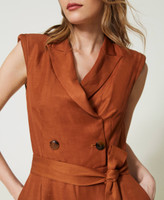 - 83% viscose 17% linen. Pocket lining: 68% acetate 32% polyester. Belt: 83% viscose 17% linen