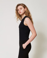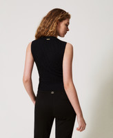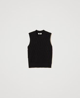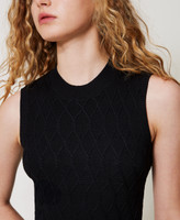 Viscose blend knit top with lozenge pattern. Sleeveless, ribbed trims, logo plate on the back, straight fit.