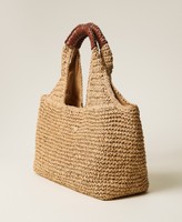 Hand-woven cellulose raffia hobo bag with faux leather handle finished by hand, zip fastening, lining, heart-shaped metal logo on the front.