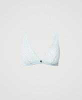 Tulle triangle bra with daisy print all over, no padding, covered shoulder straps.