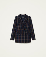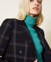 Yarn-dyed jacquard with check pattern, Actitude collection, double breasted with inner shoulder pads, flap pockets, lining.