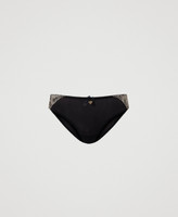 Microfibre briefs with foliage embroidery tulle inserts on the sides, see-through embroidered tulle on the back.