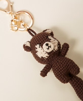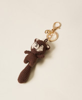 Squirrel-shaped cotton crochet key ring. Gold-tone metal carabiner, ring and Oval T charm.