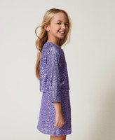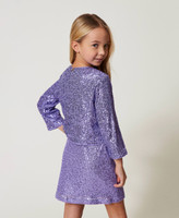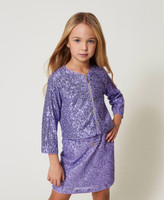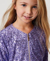 Girls' full sequin jacket with a round neck, zip fastening with logoed zip puller, slightly flared long sleeves, crêpe de Chine lining, straight fit.
