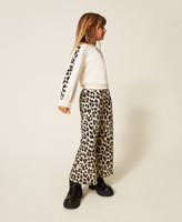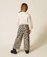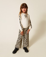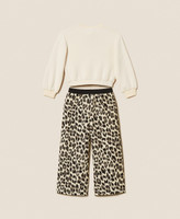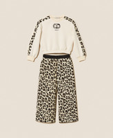 Scuba fabric set consisting of sweatshirt and trousers. The sweatshirt has Oval T logo and printed details on the sleeves, round neck, straight fit. The animal print wide cut trousers have an elasticated waist.