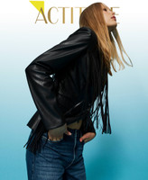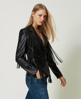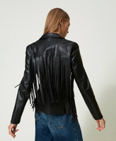 Leather-like jacket with fringes