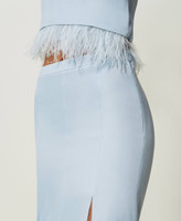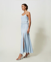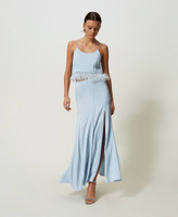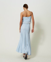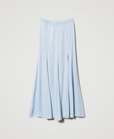 Long matte viscose satin skirt crafted from vertical panels that flare at the bottom, with deep side slit and no lining.