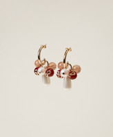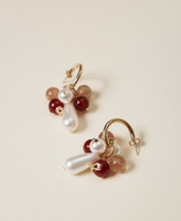 Half-hoop earrings with hard stones and logo customisation, pearl pendants and pin and butterfly closure.