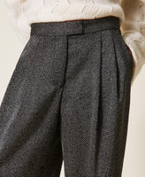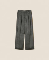 Actitude collection trousers with herringbone laminated print. Double front crease, slant pockets, palazzo fit.