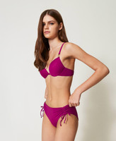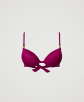 Push-up bikini top with Oval T logo on the shoulder straps. Straps can be self tied behind the neck or turned into shoulder straps using the eyelet ends. Back self-tie.