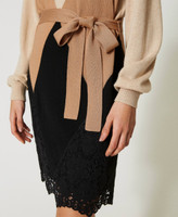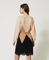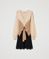 Short wool blend dress with lace