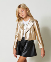 Biker jacket with gold-tone coating