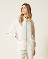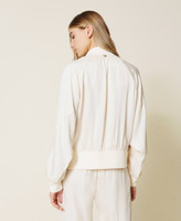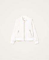 Envers satin bomber Jackets with ribbed trim, zip closure and logo puller, zip pockets, logo plate, tonal crêpe de Chine lining. It will elevate your outfits and become the season’s top garment.