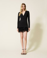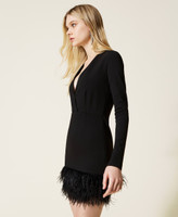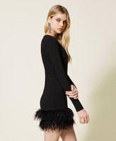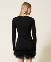- 68% viscose 27% polyamide 5% elastane. Material 2: 97% polyester 3% elastane. Material 3: 100% ostrich feathers