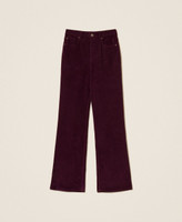 Cotton blend stretch corduroy trousers with zip and branded button, five pockets, Oval T logo plate at the back, straight fit.