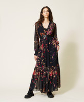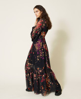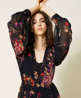 Actitude collection long georgette dress with floral print all over, long see-through sleeves, matching slip.