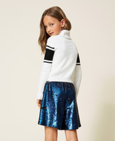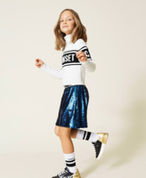 Glamorous, bright and fun: its reversible sequins change colour as you pass your hand over them. These Girls’ shorts are lined and personalized with a contrasting logo on the elastic at the waist. Create a modern and sophisticated look with a jumper or sweatshirt and booties.