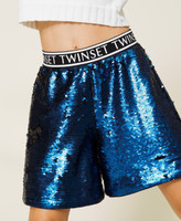 Full reversible sequin shorts with contrasting logo elastic at the waist, lining.