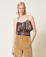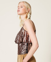 Straight fit top with reversible sequins, sideways flounce enhancing the neckline, invisible zip, lining.