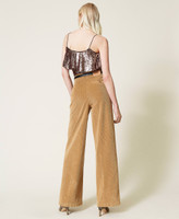 Light up your style with the straight fit top with reversible sequins, sideways flounce enhancing the neckline, invisible zip, lining. Spotlight on the special craft: the garment’s unique light is created by the embroidery technique of sewing each sequin in just one point, so that they can move to capture the light. This technique also keeps the fabric softer. Unmissable, and perfect for important occasions too.