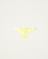 Brazilian bikini bottom made from embossed gingham fabric tied up in a knot on the hips, with logo plate on the back.