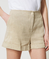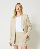 - 60% linen 29% cotton 11% polyester. Pocket lining: 68% acetate 32% polyester.