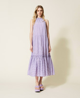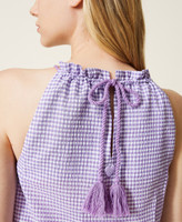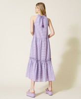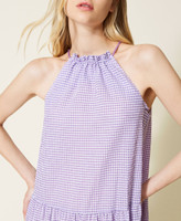 Long dress made from embossed gingham cotton with halter neck, tailored waist, flounce at the hem.