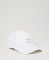 Girls' macramé lace baseball cap with light gold-tone Oval T logo.