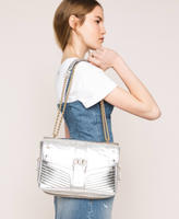 Medium Rebel leather bag with chain strap, leather shoulder pad, zip-around, decorative buckle.