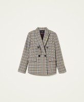 Actitude collection double-breasted jacket with yarn-dyed multicolour glen plaid pattern, contrasting embroideries, lining.