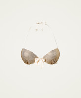 Full rhinestone push-up padded bikini top with underwire, non-removable cups, removable tonal lace.