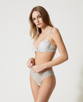 Tulle push-up bra with daisy print all over, padded with removable cups, contrasting lace.