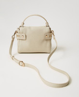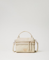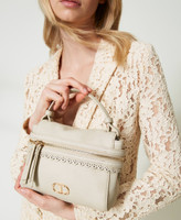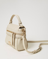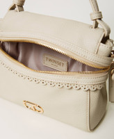 Small leather-like ‘Cécile’ top handle bag with padded handle, dual cursor zip opening, openwork scalloped finish and removable shoulder strap.