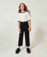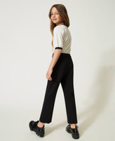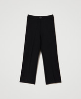 Stretch viscose Milano stitch straight trousers with metal Oval T logo, rear pleats, side zip.