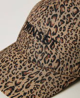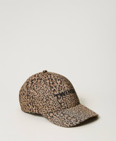 Shiny technical fabric baseball hat with animal print, thread-embroidered logo in front and adjuster on the back.