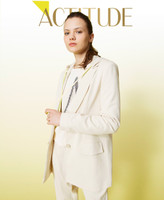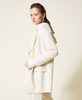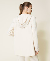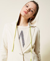 Actitude collection blazer made from Milano stitch and envers satin fabrics with removable hood and neon-coloured drawstring.