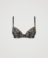 Tulle push-up bra with foliage embroidery, removable padded cups, underwire and adjustable shoulder straps.