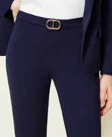 Stretch Milano stitch cropped, flared trousers with metal logo at the waist, side zip.