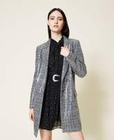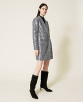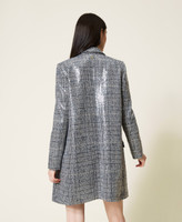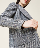 Wool blend coat with Glen Plaid pattern embroidered with see-through sequins.