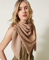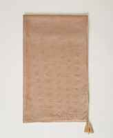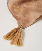 Modal kefiah with studs designing Oval T all over and lettering logo, tassel at the corner.